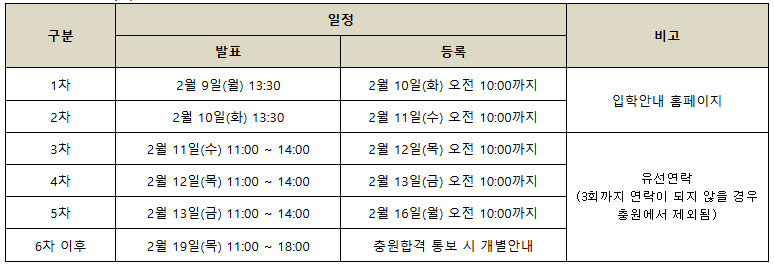 2026학년도 편입학모집 충원합격 발표 계획 및 현황